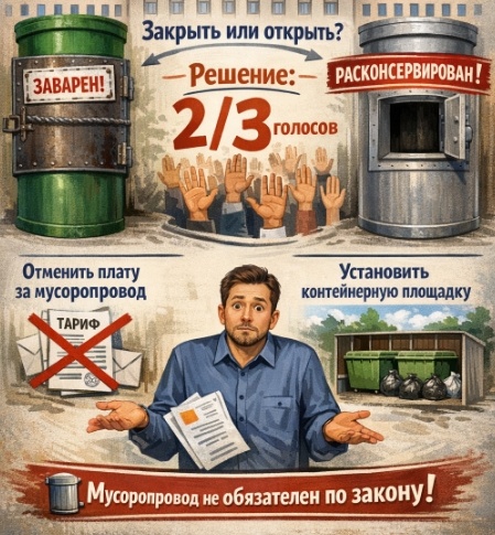 Минстрой не выдержал и все-таки высказался про мусоропроводы. Удивительно, насколько живуча темы заваривания мусоропроводов. В письме от 17.11.2025 №31835-ОГ/00 Минстрой отметил, прежде всего: "собственники помещений в МКД вправе рассмотреть на общем собрании собственников помещений вопрос как о закрытии (консервации) системы мусороудаления (мусоропровода), так и о его расконсервации, являющемся общим имуществом в МКД." Но ведь самое интересное, сколько голосов для такого решения требуется? А вот ответ: "В силу части 1 статьи 46 ЖК РФ решения общего собрания собственников помещений в МКД по указанному вопросу должны приниматься большинством не менее двух третей (2/3) голосов от общего числа голосов собственников помещений в МКД." Кроме этого, на общем собрании нужно исключить оплата за содержание мусоропровода из тарифа на содержание, но предусмотреть другой порядок удаления отходов (контейнерная площадка). Под конец Минстрой еще отметил, что по действующим правилам наличие мусоропро
