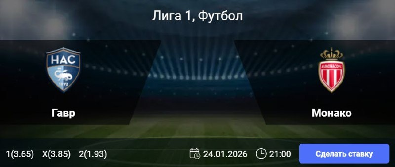 Статистика Гавра: В восьми из десяти последних матчей «Гавра» в чемпионате было забито не более двух голов. В семи из десяти предыдущих игр команды в Лиге 1 как минимум одна из сторон не смогла отличиться. На своем поле «Гавр» не проигрывал в семи из восьми последних матчей в рамках чемпионата (три победы, четыре ничьи). Статистика Монако: «Монако» потерпел семь поражений в восьми последних матчах Лиги 1. В одиннадцати из шестнадцати предыдущих игр команды в чемпионате обе стороны забивали голы. В пяти из шести последних матчей Лиги 1 монегаски не смогли забить в первом тайме. 🎯 1X 🎲 кф (1.87) 👉 СДЕЛАТЬ СТАВКУ 🎁 ФРИБЕТ WINLINE - 3000₽ (промокод: BETWIN) 👉 СМОТРЕТЬ ПРОГНОЗ 👇 Подпишись на нас 🧿 ВКонтакте ✈️ Телеграм 📎 Сайт