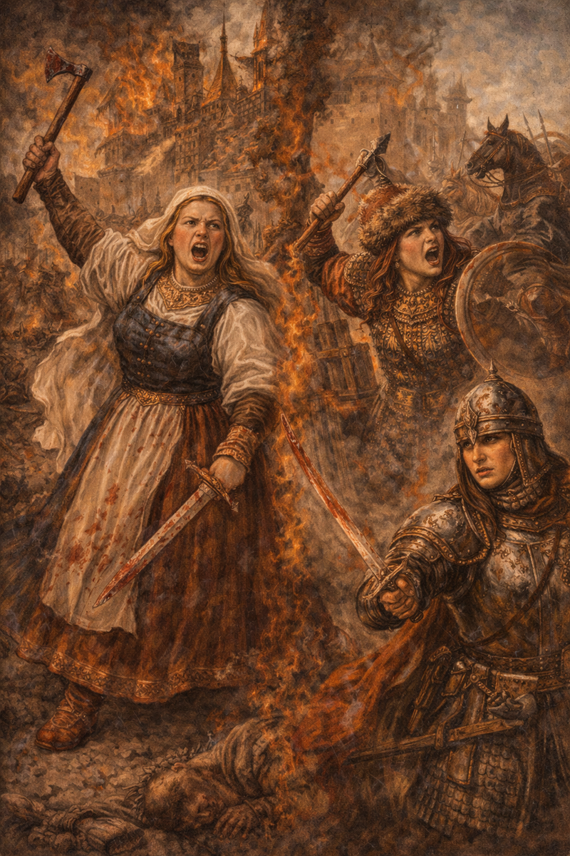 В ливонских хрониках XVI века, в частности в сочинении Иоганна Реннера, образы женщин-мстительниц приобрели статус символа сопротивления благодаря особому «феминному дискурсу», характерному для европейской культуры того времени. Эти образы выполняли сразу несколько важных идеологических и литературных функций: Героизм женщин, проявлявших несвойственные им гендерные роли (например, участие в казнях или преследование врага), использовался хронистами для того, чтобы подчеркнуть некомпетентность и слабость мужчин. Когда женщина была вынуждена брать в руки оружие или дубину, это служило живым упреком ливонским политикам и воинам, чьи ошибки и прегрешения привели страну к катастрофе. Таким образом, женское мужество выступало зеркалом мужского бессилия. Согласно источникам, масштаб тирании и «бесчеловечности» захватчиков в европейской книжности определялся через их произвол над «слабым существом». Описание зверств московитов над женщинами (например, убийство беременных) служило для максималь
