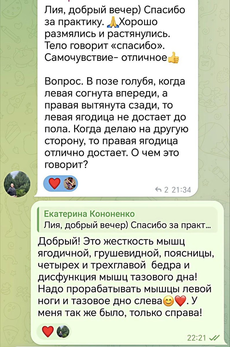 Отвечаю на вопросы моих учеников йога-клуба с удовольствием! ☝️Если вы регулярно и более полугода практикуете стретчинг, йогу, стараетесь устранить зажимы после силовых нагрузок в тренажёрном зале и наблюдаете в своем теле разную степень работы мышц правой и левой половин тела - разная растяжка в продольном шпагате налево и направо, разное положение коленей в "бабочке", напряжение и боли в пояснице, между лопатками, в плечах и шее во время выполнения мягкой растяжки, то это говорит о нарушении работы мышц ног, тазового дна и стабилизаторов позвоночника!!!! Поверьте вы и в жиме лёжа, становой тяге, приседах с весом, гиперэкстензии будете включать в работу и опираться одной половиной мышечной системы левой или правой, и формировать в теле перекосы, а так же патологические паттерны движения!!! Либо будете все время не правильно выполнять стретчинг травмируя колени, тазобедренные и поясницу!!! А так же травмировать себя в Асанах йоги выбирая идеальную форму, а не правильное движение вну