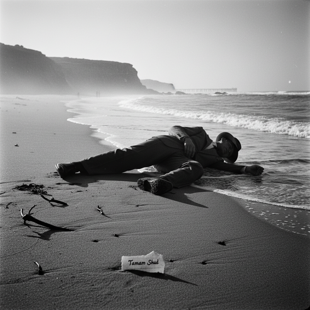 В декабре 1948 года на пляже Сомертон в Австралии было найдено тело безупречно одетого мужчины. В его кармане обнаружили клочок бумаги с надписью «Tamam Shud» (окончено). Это была вырванная страница из редчайшего издания «Рубайат» Омара Хайяма.