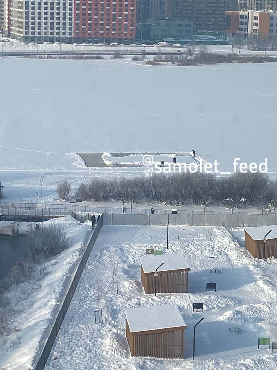 Соседи на озере чистят площадку под каток ⛸