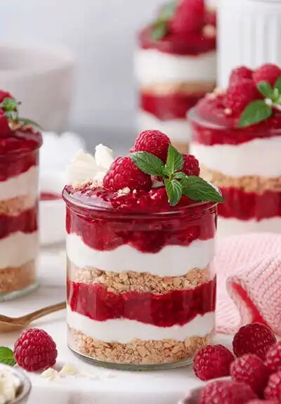 Эти восхитительные малиновые парфе просты в приготовлении, но их вкус и внешний вид просто бесподобны. Они состоят из слоёв сливочного йогурта, пикантного малинового соуса и маслянистой крошки из печенья. Этот простой малиновый десерт идеально подходит для любого случая. Вот рецепт малинового парфе. Продукты необходимые для приготовления: