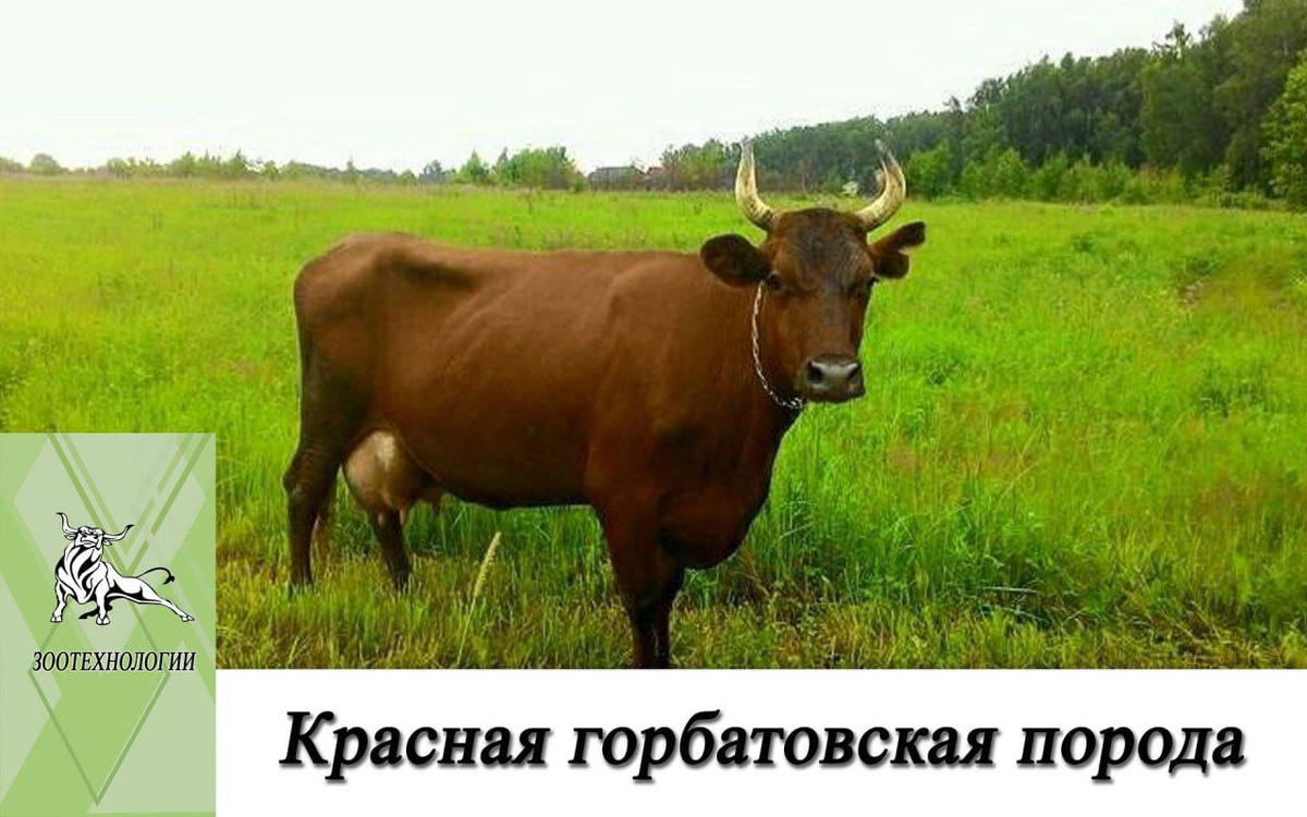 📖 Красная горбатовская порода создана в Нижегородской губернии (Нижегородская область) в Горбатовском уезде в 19 веке. Местный скот скрещивали с тирольским, завезенным из Швейцарии, отличающимся высокой жирностью молока. Отбор скота шел по масти, а не только по молочности и содержанию жира в молоке, на племя оставляли животных красного цвета. Утвердили породу в 1926 году. 🐄 Описание красной горбатовской породы: Коровы этой породы красной масти с оттенками вишнево-красного цвета. Встречаются животные с отметинами на вымени и нижней части брюха, реже на кончике хвоста. На шее и голове быки имеют более темный окрас, переходящий в почти черный цвет. Животные гармонично сложены, крепкой конституции. Скот невысокий и составляет 120-124 см в холке. Косая длина туловища – 145-155 см. Голова короткая, рога белые, с темными концами. Шея средней длины, широкая. Носовое зеркало светлое. Грудь широкая (36-39 см) и глубокая (60-67 см), обхват груди 180-182 см. Спина и поясница широкие, ровные. В