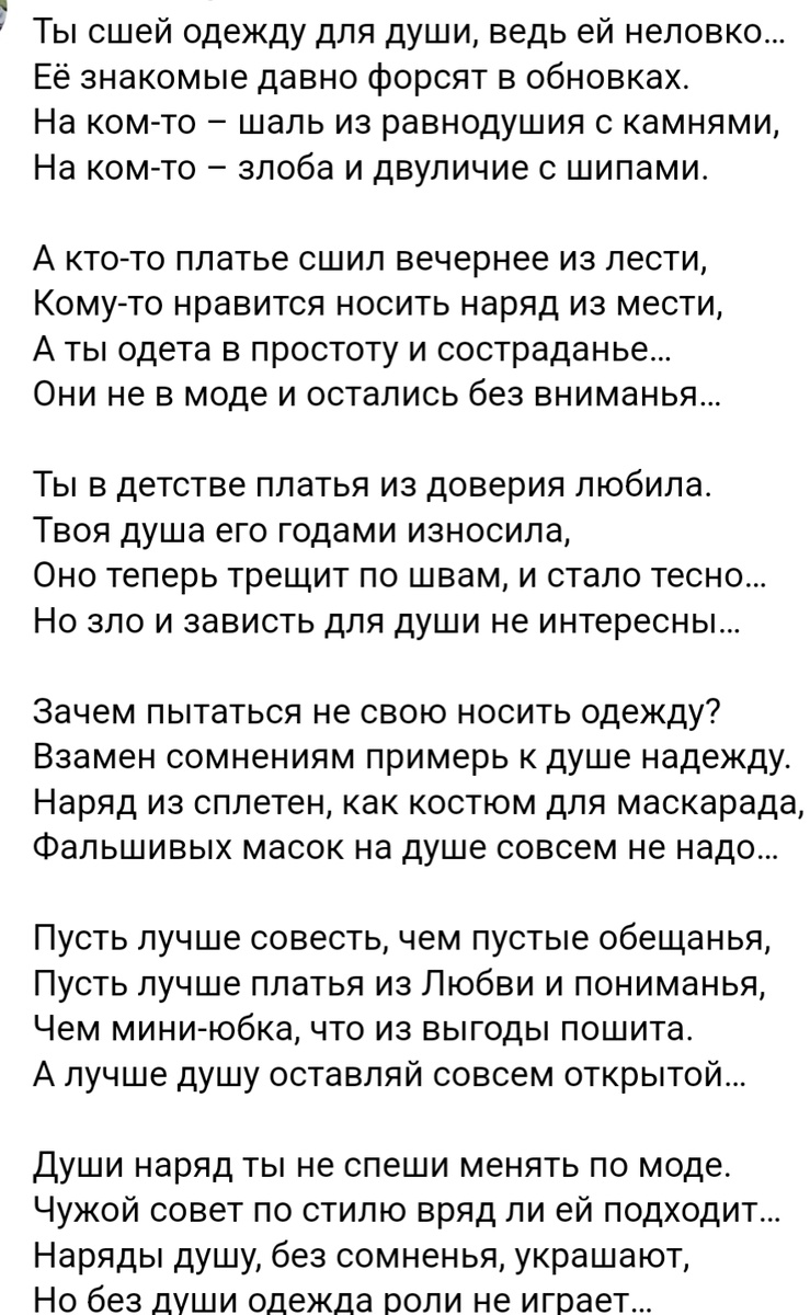 "Ты сшей одежду для души, ведь ей неловко...". Репост