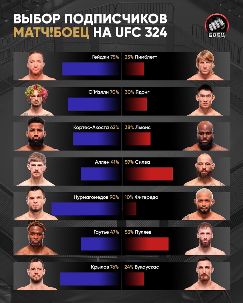 Подъехали итоги голосования за фаворитов UFC 324 😏