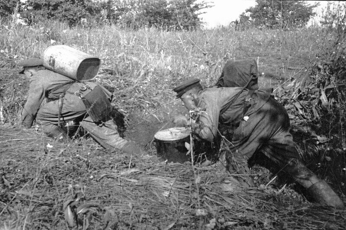 Здравствуйте Уважаемые читатели! Очень интересная фотография, сделанная в августе 1943 года фотокорреспондентом Ольгой Александровной Ландер. Два бойца, Кузьмин и Борбат, доставляют обед на передовую сослуживцам. Как правило, для этого использовались два вида термосов, один - с овальным дном и ремнями для переноски на спине, как у первого солдата. Второй вид был цилиндрическим и имел ручки для переноса двумя бойцами одновременно. Кстати я рассказывал про штурмовку, в которой Ил-2, помогли вражеские истребители, поднятые по тревоги. А у меня все. Еще больше фактов на канале "Наша история это Гордость" в ТГ. Спасибо за внимание. До свидания! Пост автора nashaistoriagord. Читать комментарии на Пикабу.