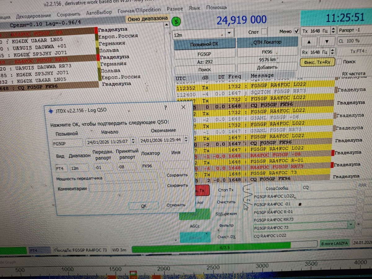 Кучно сегодня идет. Вот и Гваделупа в логе. Вообще 12 метровый диапазон интересен. Пожалуй, к лету постараюсь 5/8 на него организовать.