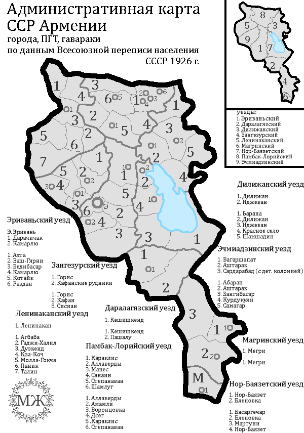 Административная карта Армянской ССР, для ориентирования.