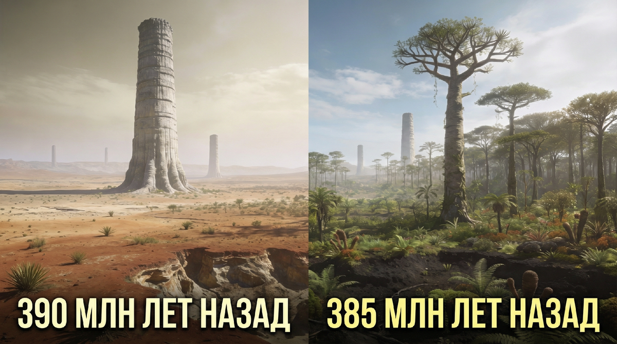 Около 390 миллионов лет назад в девонском периоде появились первые настоящие деревья. Поначалу они были невысокими — метров пять-шесть. Но эволюционировали быстро. Развили корни, уходящие глубоко в землю. Создали листья для эффективного фотосинтеза.