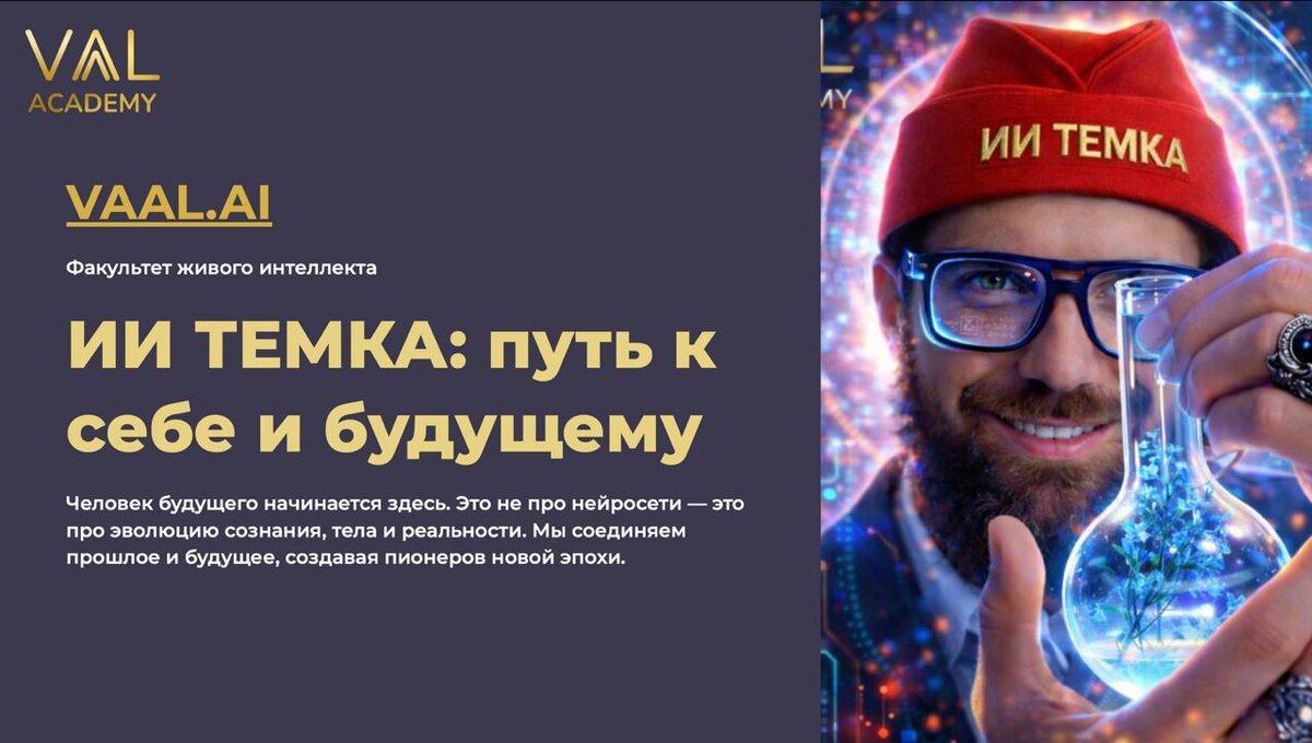 AI. Это пространство для новичков, которые хотят наконец-то разобраться с нейросетями, перестать бояться ИИ и начать использовать его в жизни, работе и творчестве. Без перегруза, без сложных терминов и заумных объяснений. Пошагово, понятно, в живом формате и с личным ведением. Мы учим писать тексты, создавать картинки, делать видео, презентации, лендинги и персональных AI-ассистентов, чтобы ИИ стал реальным помощником, а не чем-то сложным и непонятным. Если у тебя есть друзья, которые давно хотели разобраться с ИИ, но откладывали — расскажи им об этом. Регистрация на первый поток: https://iavaal.com/ai_temka. Вопросы — в отдел заботы: https://t.me/academy_vaal.