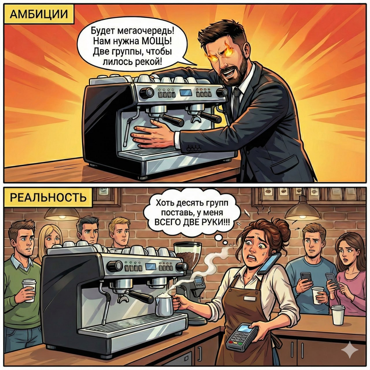 Перед тем как сесть за этот пост, я ради интереса чекнул конкурентов по снабжению - половина просто испарилась с рынка. Мне-то это только на руку, но для вас это серьезный повод поговорить про ЖЕЛЕЗО. Новички в кофейном бизнесе часто ведутся на чистые эмоции: «Хочу свое!», «Хочу все новое в пленке!», «Хочу мощную машину, как в Старбаксе!». Стоп. Прямо сейчас выдыхаем, включаем калькулятор и выключаем внутренние «хотелки». Разбираемся, как не слить бюджет на старте. Скажу честно: мы в kofcheg.ru тоже даем кофемашины «бесплатно под выборку определенного объема кофе». Почему? Потому что рынку так психологически проще. Клиенту кажется, что он круто сэкономил. Но я, как системный предприниматель, скажу прямо: это кривая математика. Аренда оборудования всегда «размазана» внутри цены каждого килограмма кофе. Вам нужно 15 кг в месяц? Окей. А если наступил несезон и вы упали до 5 кг? Цена за пачку для вас улетает в космос, или вы просто не проходите по условиям договора. Такая неопределенность