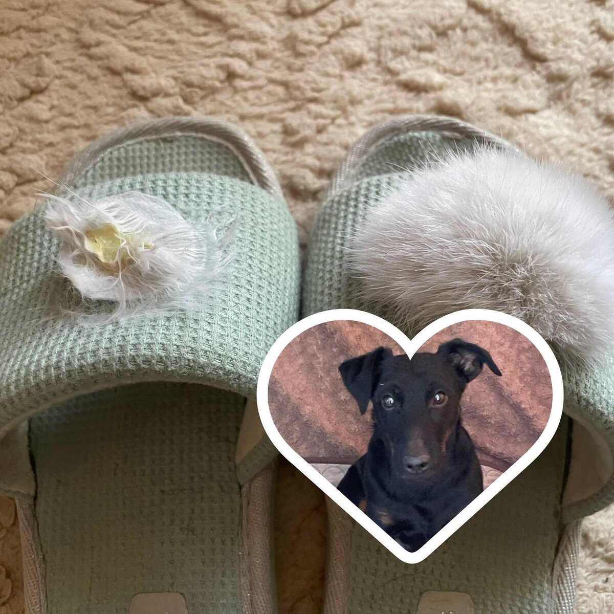! И он давно ничего дома не грызет, кроме своих игрушек. Всегда приносит мне тапочки, когда попрошу! 🫶 В последнее время, когда видит, что я босая, тоже приносит. Даже уже просить не надо)) А это, между прочим, были мои новые, красивые и очень удобные тапочки ⬆️ С шикарными пушистыми помпонами из натурального меха. Очень уж этому охотнику понравился их натуральный мех. И пока мы спокойно смотрели кино, он втихаря сожрал один помпон 😭 Есть у вас идеи, как реанимировать? Или идти за новыми тапками? Ну не ходить же так)) 🙈 #чапик_natazam #личное_natazam #юмор_natazam