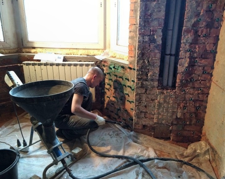 Инъектирование - технология направленного нагнетания инъекционных материалов в пористую структуру конструкций (бетона, кладки, грунтов) под контролируемым давлением. Процесс осуществляется с использованием профессионального насосного оборудования (перистальтические, поршневые, шнековые агрегаты) через специальные элементы - пакеры.