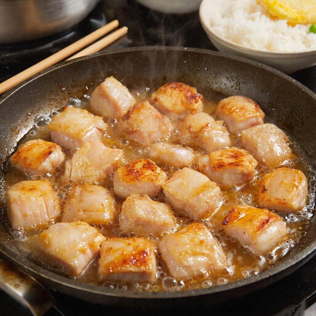 - Смешивание: В сковороде (желательно с антипригарным покрытием) соедините все ингредиенты: нарезанное куриное мясо, водку, сёю, сахар и воду (или даси). Хорошо перемешайте, чтобы мясо равномерно покрылось маринадом.