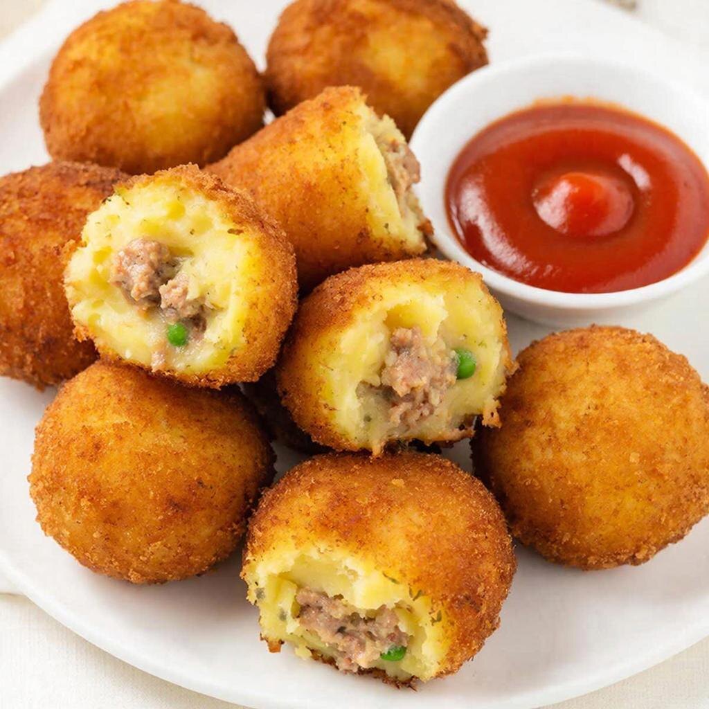 Картофельные крокеты, или "дзягаимо-но курокэтто" (じゃがいものコロッケ), – это одно из самых любимых и распространенных блюд японской кухни. Они представляют собой нежные картофельные шарики или котлетки, обжаренные до хрустящей золотистой корочки, с разнообразными начинками. Сегодня мы предлагаем вам приготовить классический вариант с мясной начинкой, который покорит сердца ваших близких!