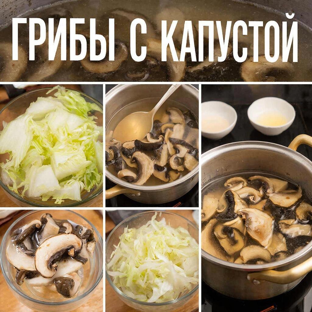 - Полезность: Грибы богаты белком и витаминами, а капуста – клетчаткой и витамином С.