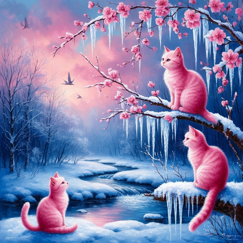 Сидят на ветках слегка розовые кошки,