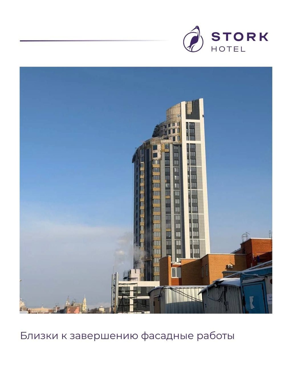 ! — Идут отделочные работы, монтаж электрики и сантехники. — 10 этаж уже частично готов: установлена мебель, и пространство начинает «звучать» — уже понятно, каким будет стиль, настроение и атмосфера. — Параллельно приводят в порядок лестничные клетки — потому что важно не только, как выглядит номер, но и какое впечатление остаётся с порога. Фасад почти готов — внешний облик здания уже чётко читается и выглядит именно так, как задумывали💥