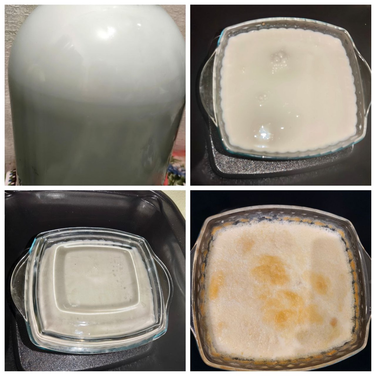 Молоко медленно томится, приобретает кремовый оттенок и сладковатый вкус. Это основа настоящего варенца. Важно: