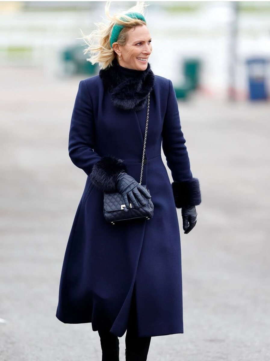 Племянница Карла III Зара Тиндалл раздает сегодня стильные сине-бирюзовые вайбы прямиком из Челтнема.