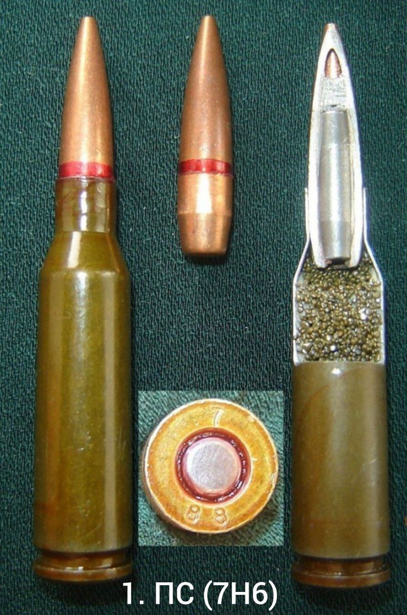 👐1. 5,45 ПС (7Н6) — патрон с обыкновенной пулей • Вес пули: 3,43 грамма. • Начальная скорость: 880 – 900 метров в секунду. • Особенности: Стальной нетермоупрочненный сердечник. Основной патрон советского периода. 👐2. 5,45 БС (7Н24) — патрон с бронебойной пулей • Вес пули: 4,1 грамма. • Начальная скорость: 840 метров в секунду. • Сердечник: вольфрамо-кадмиевый сплав. Высокая пробивная способность тяжелых бронежилетов. 👐3. 5,45 ПП (7Н10) — с пулей повышенной пробиваемости • Вес пули: 3,62 грамма. • Начальная скорость: 880 метров в секунду. • Пробиваемость: пробивает стальную плиту 16 миллиметров на дистанции 100 метров. 👐4. 5,45 БП (7Н22) — патрон с бронебойной пулей • Вес пули: 3,68 грамма. • Начальная скорость: 890 метров в секунду. • Сердечник: остроконечный, из высокоуглеродистой стали. Пробивает 5 миллиметров брони на 250 метрах. 👐5. 5,45 ПРС — с пулей пониженной рикошетирующей способности • Назначение: для спецподразделений МВД и работы в городских условиях. • Особенность:
