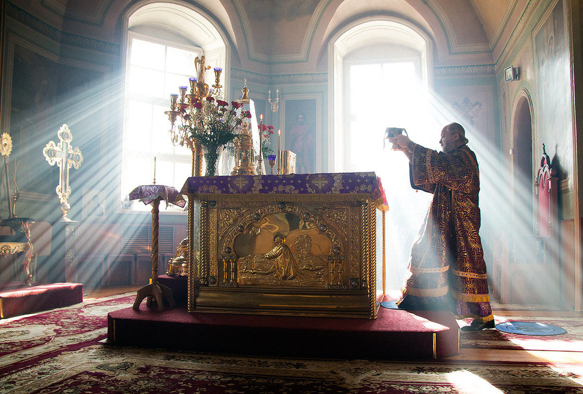 В тот самый момент, когда хор начинает петь первый антифон, в алтаре происходит что-то очень важное. Священник, стоя у престола, тихо произносит особую молитву. Часто кажется, что в это время он молится один, отдельно от нас. Но это лишь внешнее впечатление.