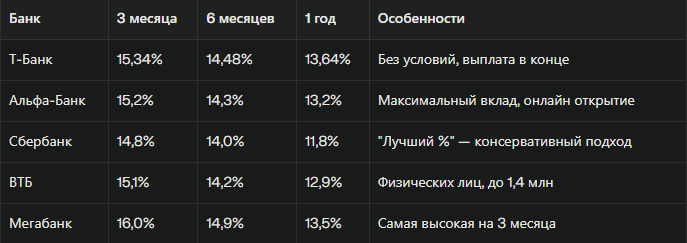 На 1 января 2026 года ключевая ставка Центрального банка России составляла 16%. Это не максимум за последние годы, но достаточно высокий уровень для вкладов. Банки на основе этой ставки предлагают: