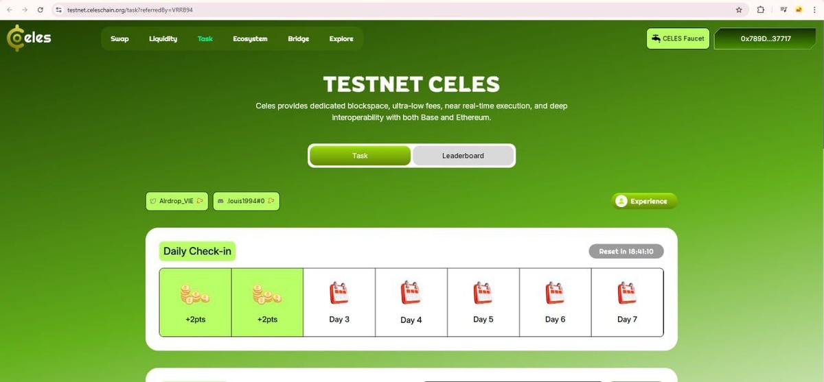 Celes Network – это блокчейн-проект и сеть уровня Web3, нацеленная на создание масштабируемой децентрализованной инфраструктуры! По инвестициям пока официальной инфы нет, но проект уже заслужил подписки от SWFT Blockchain, LASER, Chris Lea, RayNft и других крупных игроков. Сейчас у Celes идет масштабная Airdrop-кампания совместно с тестнетом! Фармим поинты через ончейн и социальные квесты, минтим NFT и выполняем активности, чтобы в будущем забрать награды в токенах $CLES. Согласно роадмапу, первая фаза тестнета стартует уже в Q1 2026 – до TGE осталось совсем немного времени! ✅ Заходим на платформу, подключаем EVM кошелек и добавляем тестовую сеть. ✅ Жмем на кран в правом верхнем углу и забираем тестовые токены. ✅ Каждый день кликаем Check-In для поддержания стрика – это важно! ✅ Берем любой адрес в эксплорере и делаем тестовые транзакции. ✅ Начинаем активно свапать токены и добавляем ликвидность на платформе. ✅ Выполняем все социальные квесты – не пропускайте! ✅ Используем функцию брид