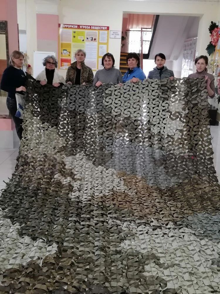 Готова новая маскировочная сеть в мастерской СДК "Лира", сообщают участницы группы " Помощь военным РФ" с вдохновителем и руководителем