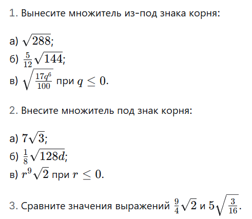 А8 ДЗ Вынесение множителя из-под знака корня. Внесение множителя под знак корня