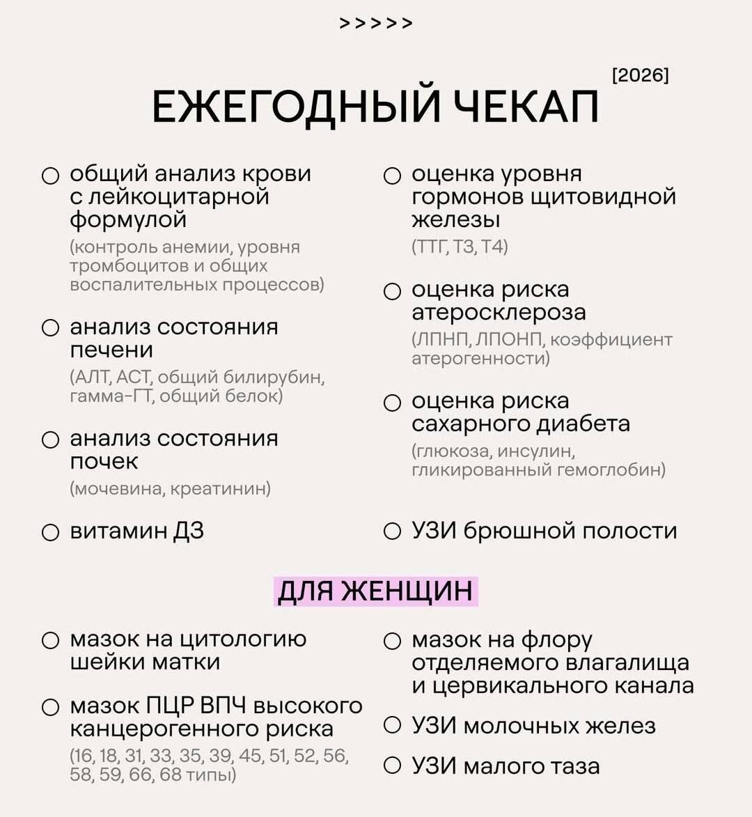 ❗️Важный список для ежегодной проверки здоровья
