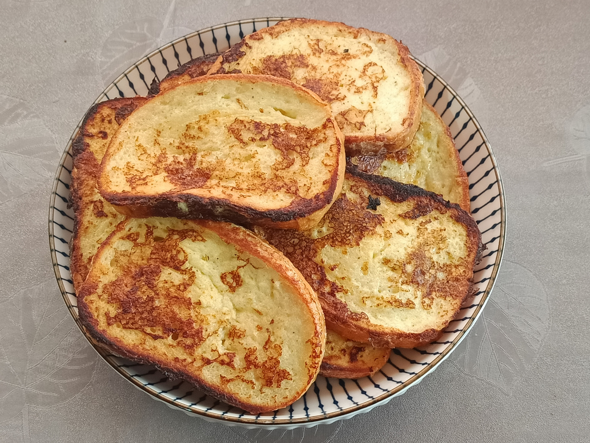 Поэтому сегодня отоспались по полной. На завтрак по быстрому пожарила гренки. Не знаю, как правильно назвать. Делаю омлетную смесь, соль, перец, хмели-сунели, немножко сахара, обваливаю и жарю, мы такое любим иногда по выходным.