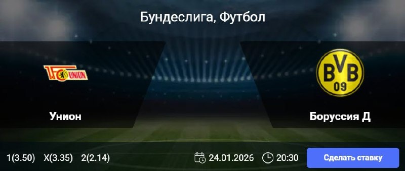 Статистика Униона: В шести из семи последних игр «Униона» в чемпионате голами отмечались обе команды. На домашней арене берлинцы не проигрывали в шести из семи предыдущих матчей Бундеслиги, одержав две победы и четырежды сыграв вничью. В пяти из шести последних домашних встреч в рамках турнира команда поражала ворота соперников. Статистика Боруссии Дортмунд: В восьми предыдущих матчах «Боруссии» в чемпионате голы забивались в обоих таймах. Команда не проигрывает в гостях на протяжении пяти игр Бундеслиги (две победы, три ничьи). В пяти из шести последних выездных матчей в рамках турнира дортмундцы не смогли сохранить свои ворота «сухими». 🎯 Обе забьют (Да) 🎲 кф (1.83) 👉 СДЕЛАТЬ СТАВКУ 🎁 ФРИБЕТ WINLINE - 3000₽ (промокод: BETWIN) 👉 СМОТРЕТЬ ПРОГНОЗ 👇 Подпишись на нас 🧿 ВКонтакте ✈️ Телеграм 📎 Сайт