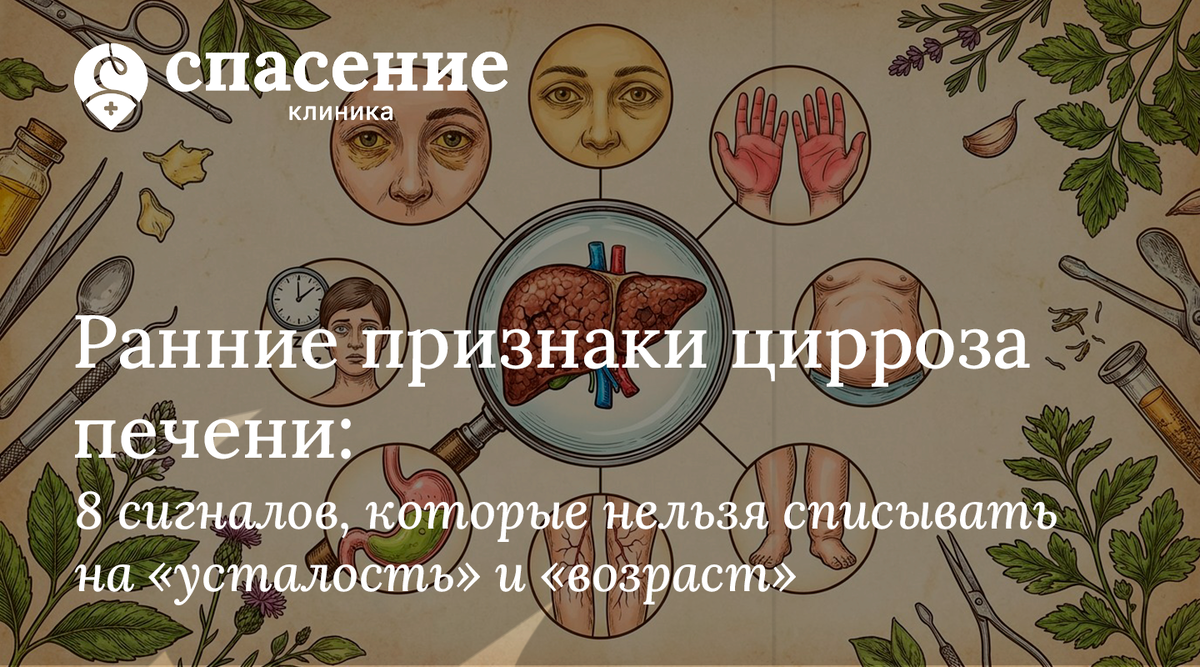 На ранних этапах цирроз может почти не давать явных симптомов. И это вызывает протест у людей, которые рассчитывают на «честные сигналы»: если серьёзно — значит должно болеть. С печенью это часто не так.