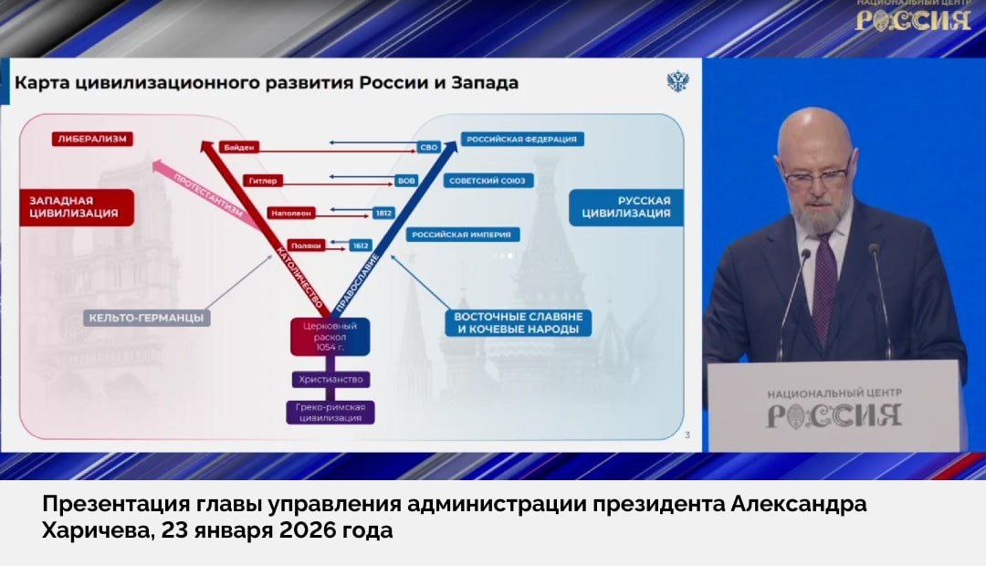 😂 «Англосаксы больше не враги»: Администрация президента выпустила новую методичку Судя по всему, главными врагами России по телевизору больше не будут называть англосаксов, новые главные враги – это теперь кельто-германцы. Такой вывод следует из презентации Александра Харичева, топ чиновника из администрации Путина. Так Харичев утверждает, что восточные славяне ближе к кочевым народам, а с европейцами ничего общего у нас нет после церковного раскола 1054 года. Но на фоне надежд госдедов на дружбу с Трампом полностью занимать антизападную позицию в Кремле не хотят. И теперь на смену злым англосаксам, пришли злые кельто-германцы. А англосаксы отныне добрые. Главное – не перепутай, дорогой друг! Напомним, что ранее Владимир Путин выдал одну из топовых должностей в «Роснефти» кельто-германцу Герхарду Шрёдеру. Уровень аналитики и идеологической полноты вы можете оценить на фото выше.