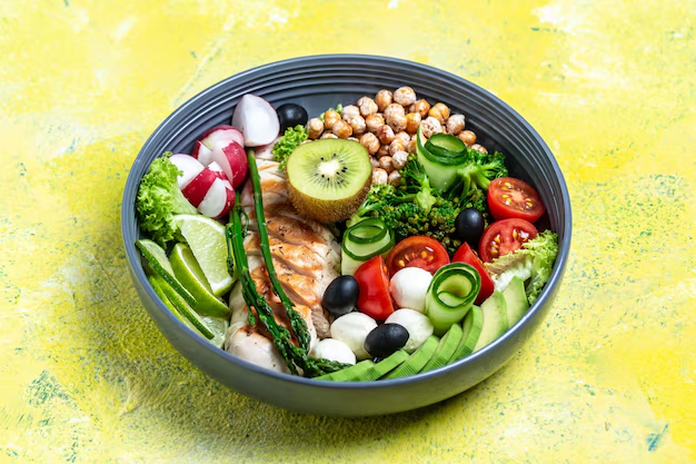 Составьте список продуктов, богатых белками, жирами и углеводами. Включите в рацион нежирное мясо, рыбу, яйца, бобовые, орехи, молочные продукты, оливковое масло, свежие овощи и фрукты.