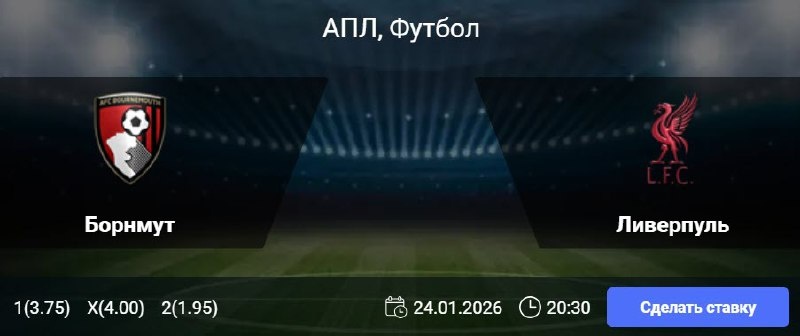 Статистика Борнмута: В последних семи матчах «Борнмута» в АПЛ обе команды забивали. На домашней арене клуб одержал лишь одну победу в предыдущих шести встречах Премьер-лиги, трижды сыграв вничью и дважды уступив. В 11 из 12 последних домашних игр чемпионата команда не проигрывала в первом тайме, одержав четыре победы и семь раз сыграв вничью. Статистика Ливерпуля: Беспроигрышная серия «Ливерпуля» в чемпионате насчитывает десять матчей (4 победы, 6 ничьих). В 13 из 18 предыдущих игр команды в Премьер-лиге было забито ровно два или три гола. В 9 из 11 последних выездных матчей АПЛ «Ливерпуль» забивал во втором тайме. 🎯 ТБ (2.5) 🎲 кф (1.55) 👉 СДЕЛАТЬ СТАВКУ 🎁 ФРИБЕТ WINLINE - 3000₽ (промокод: BETWIN) 👉 СМОТРЕТЬ ПРОГНОЗ 👇 Подпишись на нас 🧿 ВКонтакте ✈️ Телеграм 📎 Сайт