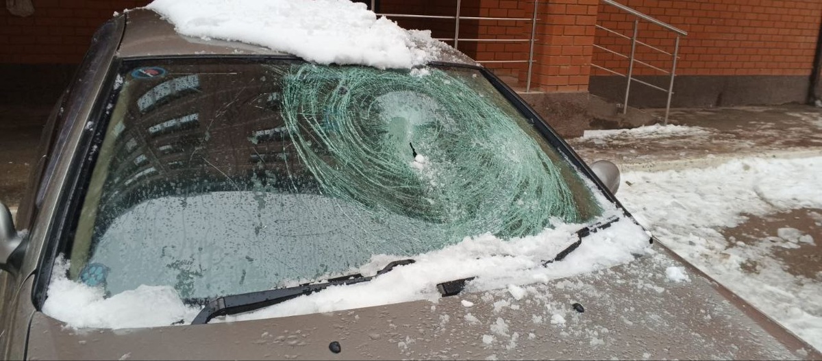 Ещё два «сюрприза» от ледяных глыб на улицах Есенина и Дунаевского в Музыкальном микрорайоне.
