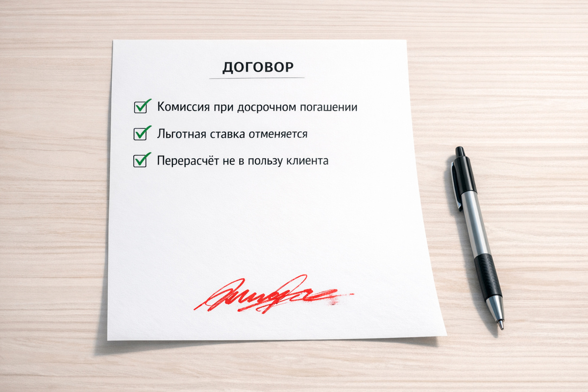 Сотрудница посчитала, называет сумму, я слушаю её и отказываюсь верить. Оказалось, при досрочном погашении та самая льготная ставка теряется, мне автоматом начисляют комиссию за расторжение. Плюс ещё проценты по другой формуле пересчитывают.