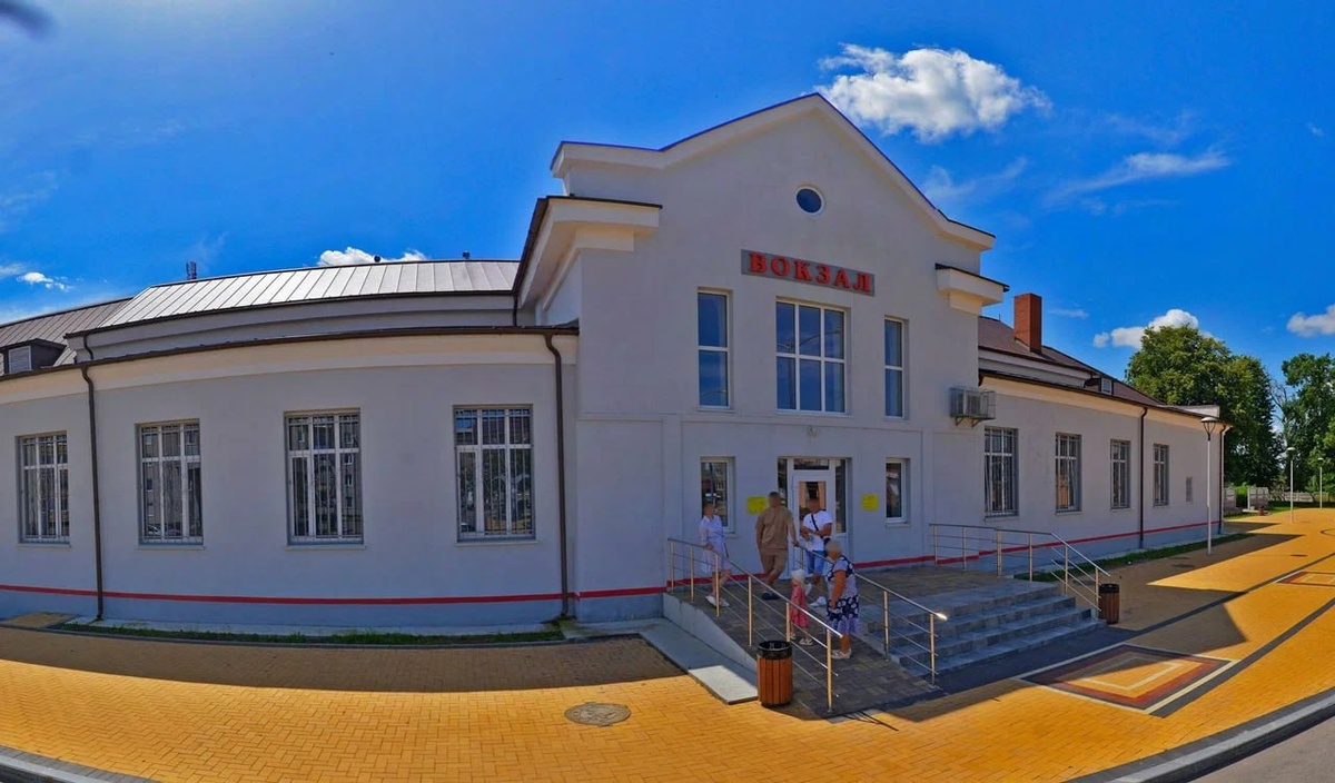 Сам вокзал появился в начале двадцатого века, когда в город проложили первый железнодорожный маршрут. Во время штурма Гумбиннена в январе 1945 года здание получило значительные повреждения, но вскоре его восстановили. Привокзальная площадь стала намного больше довоенной за счёт сноса ряда старых построек. К 25-летию Победы в Великой Отечественной войне, в 1970 году, рядом установлен памятный камень в честь войск, штурмовавших город Гумбиннен. Рядом с вокзалом сохранились две башни» конца XIX века. В них сейчас находится культурное пространство.