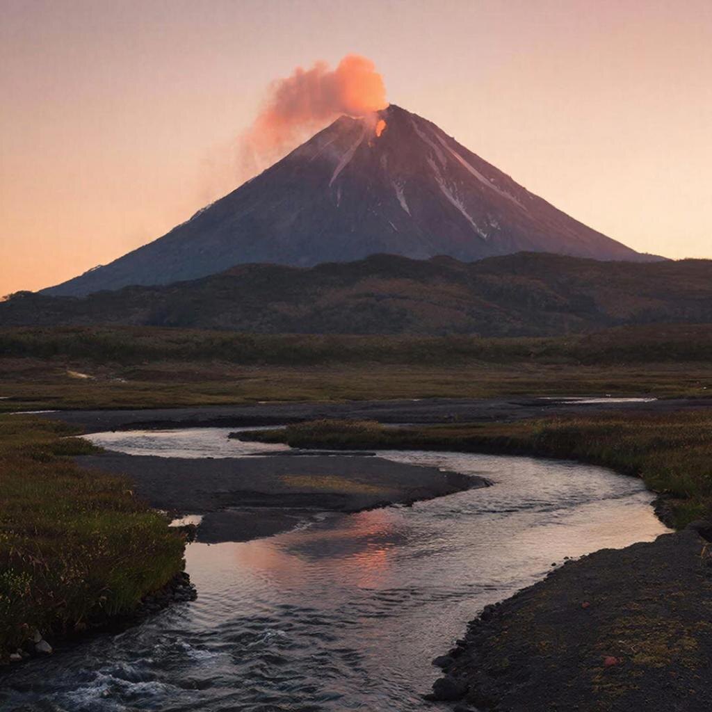 Танец огня и льда Камчатка — это не просто край. Это живое существо, дышащее огнем и обледеневшее от вечного холода. Здесь, где земля разверзается, выпуская на волю свои огненные реки, человек понимает, насколько мал он перед лицом вечности. Но именно в этой малости — его величие. Я стоял у подножия Авачинского вулкана и чувствовал, как земля пульсирует под ногами. Это не страх — это благоговение. Камчатка не прощает легкомыслия, но тем, кто приходит с уважением, она дарит видения, достойные пера самого Грина: гейзеры, танцующие в лучах солнца; медведи, идущие по берегам бурных рек; и северное сияние, раскрашивающее ночное небо в фантастические цвета. Книга, написанная огнем В этих местах каждый камень, каждый источник, каждый порыв ветра рассказывает свою историю. Историю о том, как рождались горы, как текли лавы, как жили здесь первые люди. Камчатка — это книга, написанная не чернилами, а огнем и льдом. Чтобы прочесть ее, нужно не глаза, а душа. Путешествие на Камчатку — это не поход