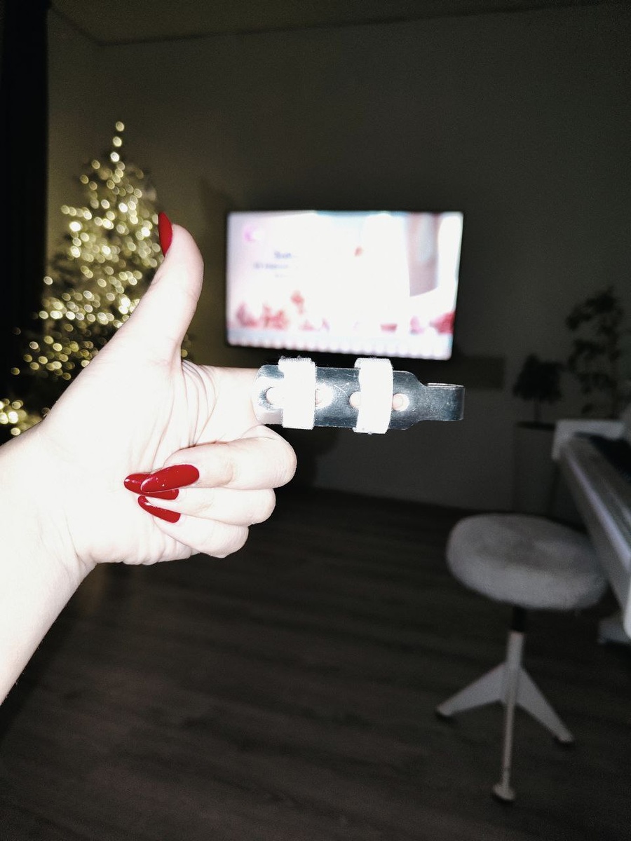 ». Теперь мой палец упакован в стильный металлический фиксатор. Выглядит это максимально сурово — как будто я наполовину Терминатор или Робокоп. 🤖 Теперь, если что, могу пугать домашних, наставляя на них палец-пистолет: «Сначала кофе, потом разговор!» 🔫 Из плюсов: руке наконец-то стало просторно, пальцы на свободе! Из минусов: левая рука за время в гипсе решила, что она в отпуске, и теперь работает на 2% мощности. Пальцы шевелятся с грацией ленивца, но ничего, мы это дело разработаем. Главное — теперь я «при параде» и с железным аргументом! 😎🦾