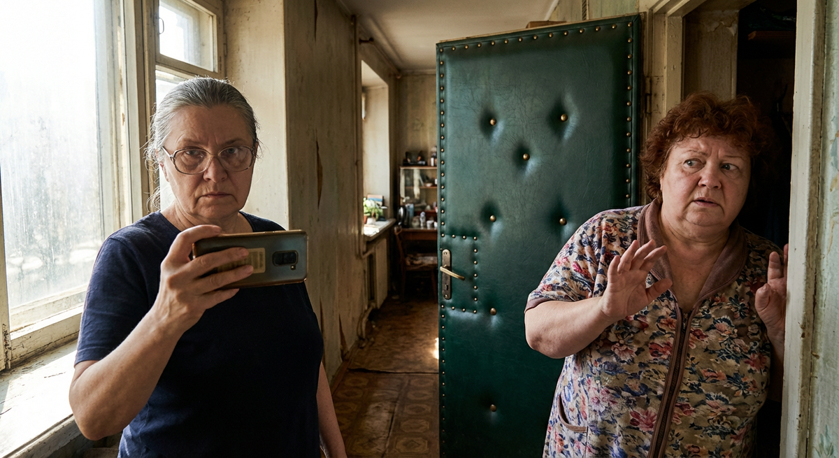 Ольга Николаевна спокойно подошла к двери. В руках у неё был телефон. Она включила камеру.