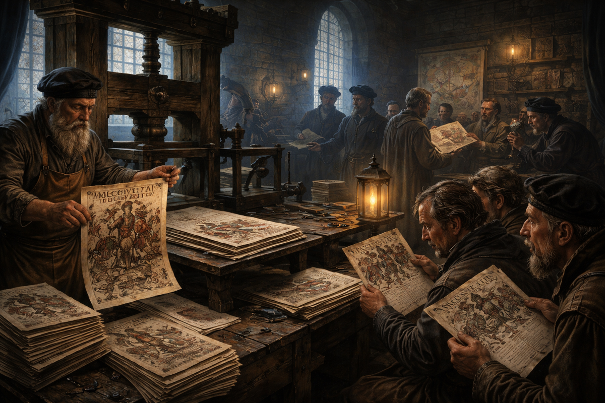 Во второй четверти XVI века скорость распространения информации совершила качественный скачок. Переход от элитарных рукописных известий к массовой печати создал новую информационную среду. Эпоха Реформации подготовила почву: горожане привыкли искать ответы в печатном слове, воспринимая его как истину.