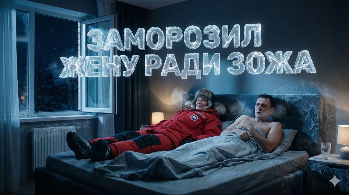 — Это тепло, Кирилл. Я не могу спать в морозилке, — спокойно ответила Лена, сидя на кровати с книгой.