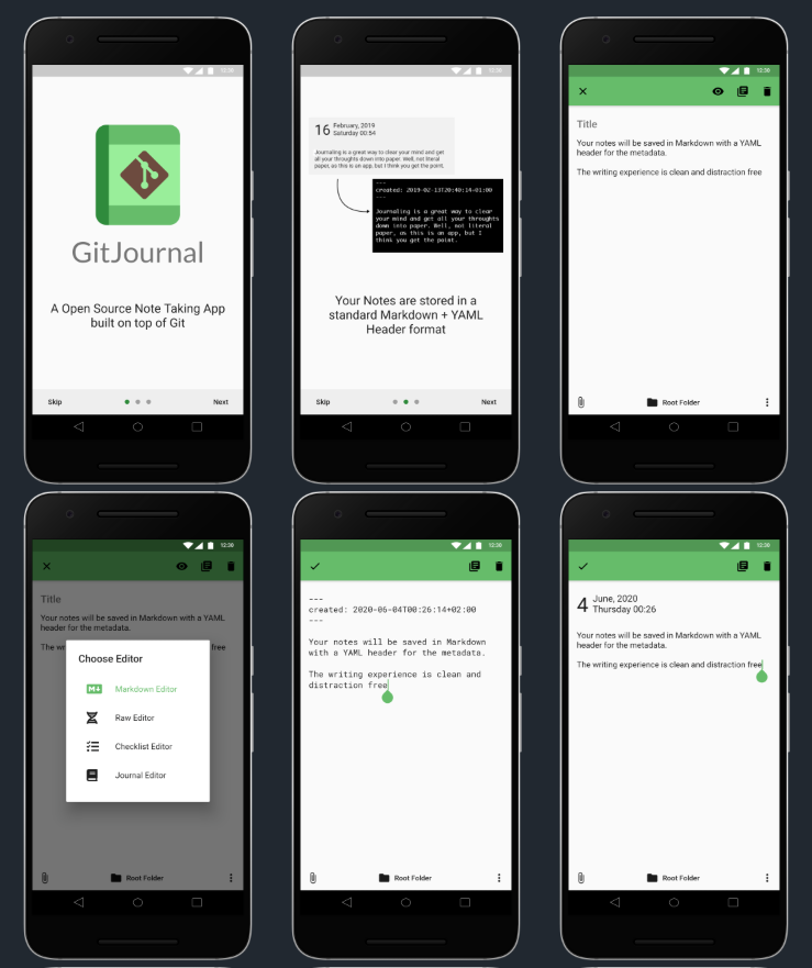 GitJournal — это приложение для ведения заметок, ориентированное на конфиденциальность и переносимость данных. Все заметки хранятся в стандартизированном формате Markdown + YAML (необязательно) в репозитории Git по вашему выбору — GitHub, GitLab или на пользовательском сервере. Это значит, что вы можете легко разместить свои заметки самостоятельно или использовать популярных провайдеров. * Полная автономность: Приложение работает по принципу offline-first. Все ваши заметки доступны без интернета, а синхронизация происходит через Git при наличии сети. * Поддержка различных Git-провайдеров: Работает через SSH и HTTPS с GitHub, GitLab, Gitea, Gogs и любыми собственными Git-серверами. * Wiki-ссылки и обратные ссылки: Позволяет связывать заметки между собой с помощью синтаксиса [[FileName]], что удобно для создания личной базы знаний (Zettelkasten). * Совместимость с десктопными приложениями: Благодаря хранению в Markdown, вы можете редактировать те же файлы на ПК через Obsidian, Logseq, Fo
