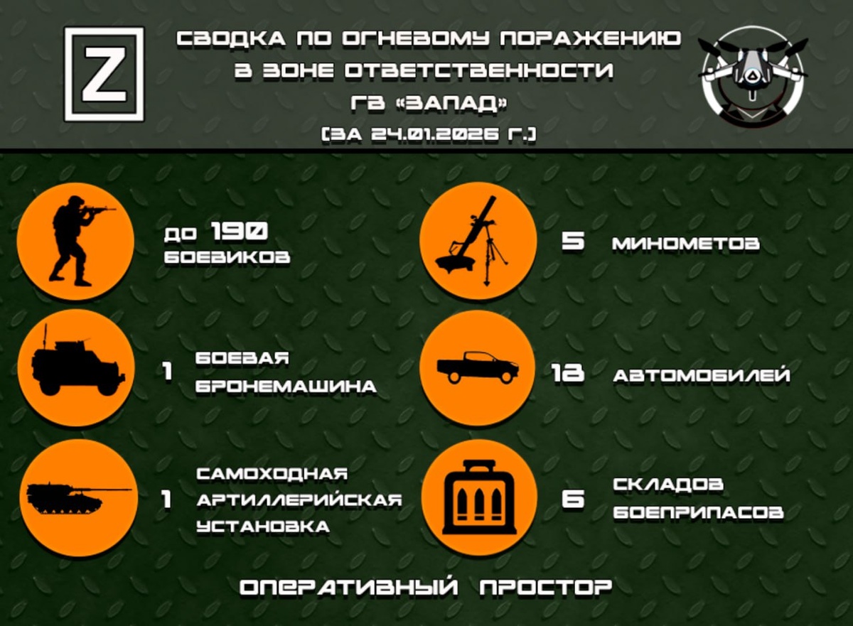 Сводка по огневому поражению в зоне ответственности ГВ «Запад» за 24.01.2026 г