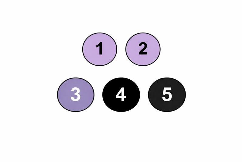 Исходя из приведенных ниже правил, нужно определить как должны стоять шары. - Ни один шар не остался на старом месте. - Шар 1 касается только шаров 2 и 3. - В обоих рядах шары слева черного цвета. - Сумма чисел на двух верхних шарах дает нечетное число. Думаем?