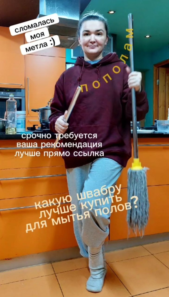 ! Мыла пол, ничего не подозревая, вдруг ХРЯСЬ!!! и ручка моей любимой швабры сломалась пополам. Думаю, пришло время для покупки новой. Порекомендуйте, пожалуйста, свои инструменты для влажной уборки. Лучше прямо ссылку в комментарии. Спасибо🙏